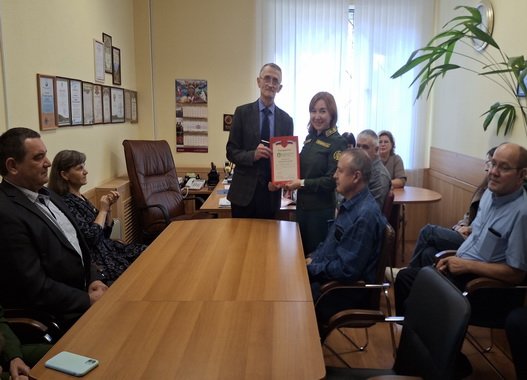 В честь праздника были торжественно вручены почетные грамоты отличившимся работникам филиала. Не остался незамеченным наш труд и вышестоящими организациями: ряду сотрудников филиала объявлены благодарности ФБУ «Рослесозащита», а начальник отдела защиты леса и ГЛПМ Александр Вавдичык удостоен почётной грамоты федерального агентства лесного хозяйства. В завершение совещания Сергей Александрович ещё раз поздравил сотрудников с предстоящим праздником, пожелал крепкого здоровья и больших успехов в нелегком, но благородном деле.