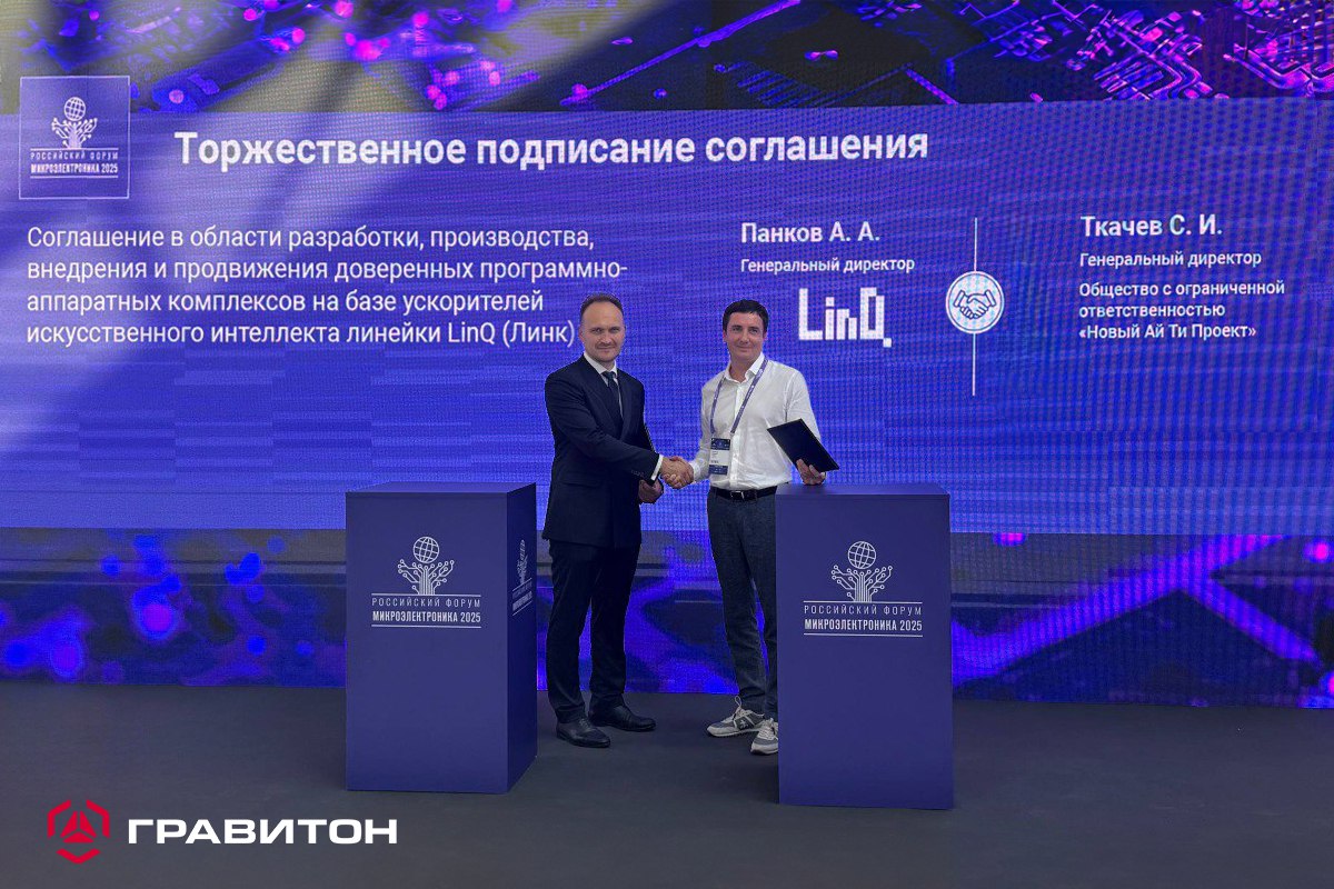 26 сентября 2025 года, Москва. — Разработчик отечественной вычислительной техники «Гравитон» и разработчик ИИ-ускорителей LinQ «ХайТэк» подписали соглашение о долгосрочном сотрудничестве в области разработки доверенных программно-аппаратных комплексов (ПАК) на базе отечественных ускорителей искусственного интеллекта LinQ. Партнерство охватывает создание ИИ-решений для критически важных отраслей экономики.