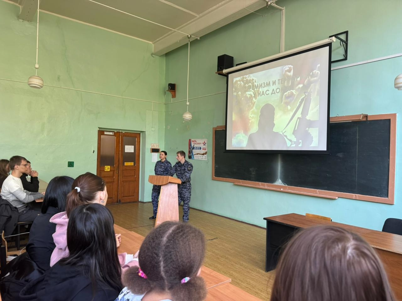 Темой занятия стало противодействие распространения идеологий терроризма и экстремизма среди молодёжи. Росгвардейцы рассказали молодым людям об угрозах, которые таит в себе современное интернет пространство, а также о правилах безопасности в нём.