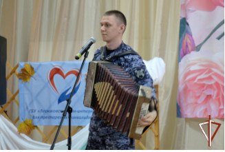 Росгвардейцы подготовили музыкальное выступление и подарили представителям старшего поколения праздничное настроение. Военнослужащий теруправления прапорщик Михаил Толоконников сыграл на гармони, исполнив под дружные аплодисменты зала популярные лирические композиции.