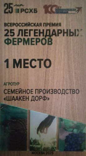 Калининградское семейное предприятие Шаакен Дорф победило в номинации «Агротур» в конкурсе «25 легендарных фермеров». Конкурс был организован Россельхозбанком совместно с медиагруппой «Комсомольская правда». За право войти в топ-25 легендарных фермеров России боролись аграрии со всей страны, и борьба эта была нешуточной, в том числе голосованием в сети.