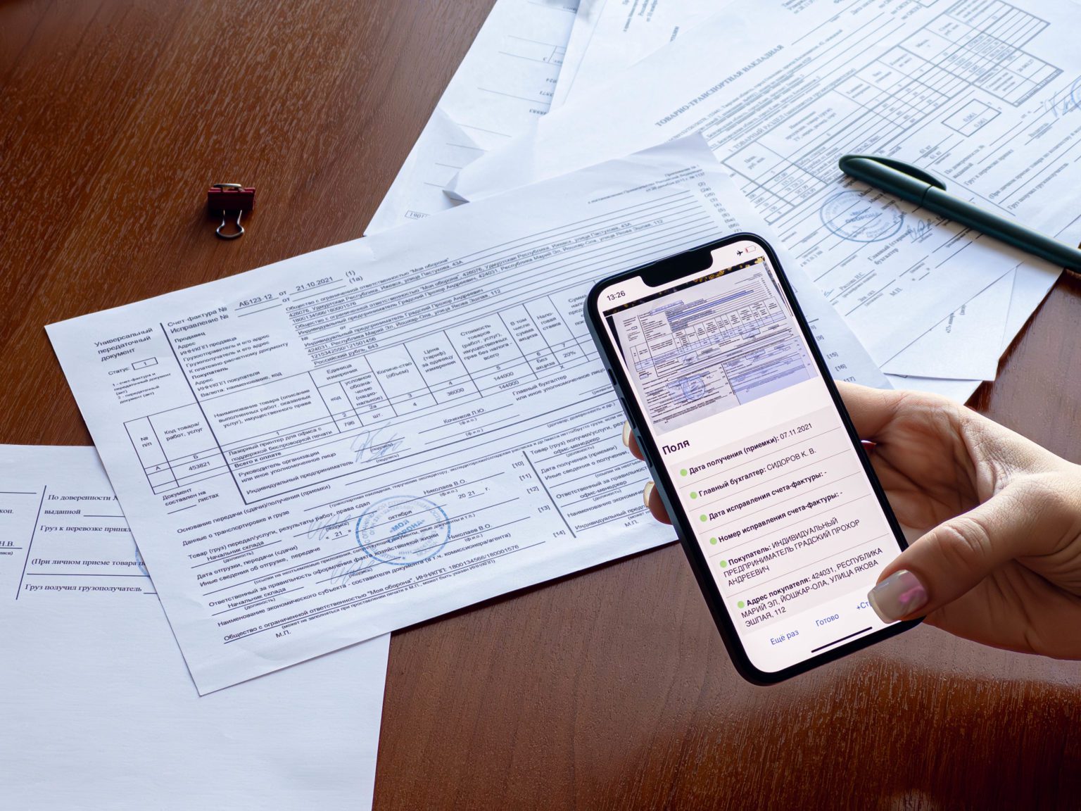 ИИ-агент распознает документы на сканах и фотографиях, автоматически извлекает даты, суммы, данные контрагентов, наименование, количество и стоимость товарных позиций в таблицах, а также НДС и другие реквизиты для последующей загрузки в 1С, ERP и другие учетные системы. Он определяет тип документа, контролирует наличие подписей и печатей и поддерживает распознавание многостраничных форм. Принцип объяснимого ИИ позволяет отследить работу системы, сохранив прозрачность и контроль за бухгалтерскими процессами.