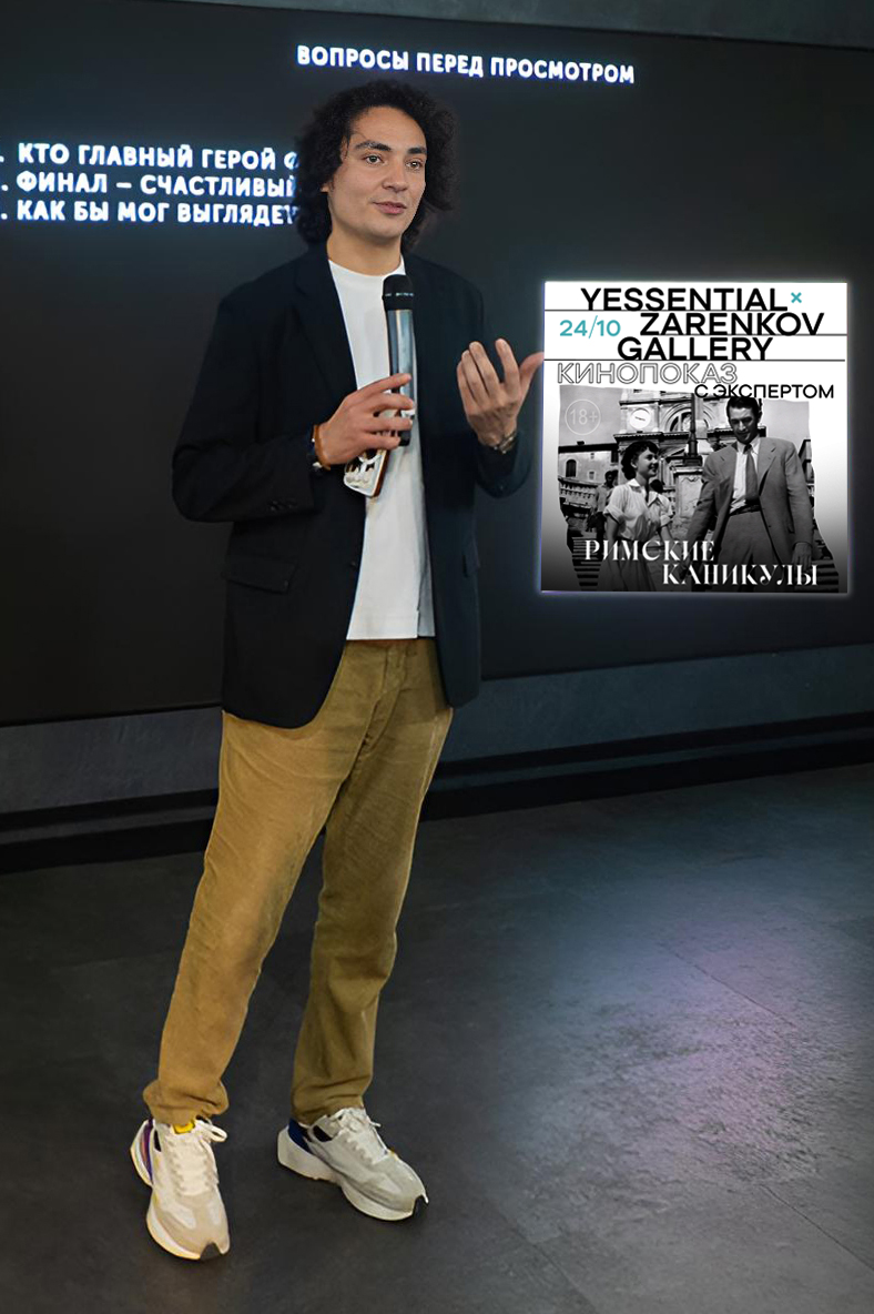 Гости погрузились в романтическое настроение Италии 1950-х годов, посмотрели культовую картину Уильяма Уайлера и обсудили ее с кинокритиком и режиссером Львом Евлампиевым. Формат открытого диалога с аудиторией уже стал визитной карточкой YESSENTIAL x ZARENKOV GALLERY. Говорили о языке кино, актерской игре Одри Хепберн и Грегори Пека и о том, почему «Римские каникулы» остаются символом легкости и искренней любви.