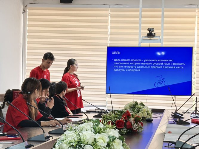 В завершающий день интенсивной программы Школы «Учусь великому» прошла защита проектов. Студенты с увлечением погрузились в совершенно новый для них вид образовательной деятельности – проектирование, и достойно справились с поставленной задачей. Проекты, представленные перед экспертами, были направлены на создание литературного и дискуссионного клуба, в которых можно изучать русскую, российскую литературу и совершенствовать коммуникативные навыки общения на русском языке. Другое направление проектов касалось создания каналов в социальных сетях, объединяющих молодых людей Хорога с целью распространения русского языка и повышения интереса к его изучению.