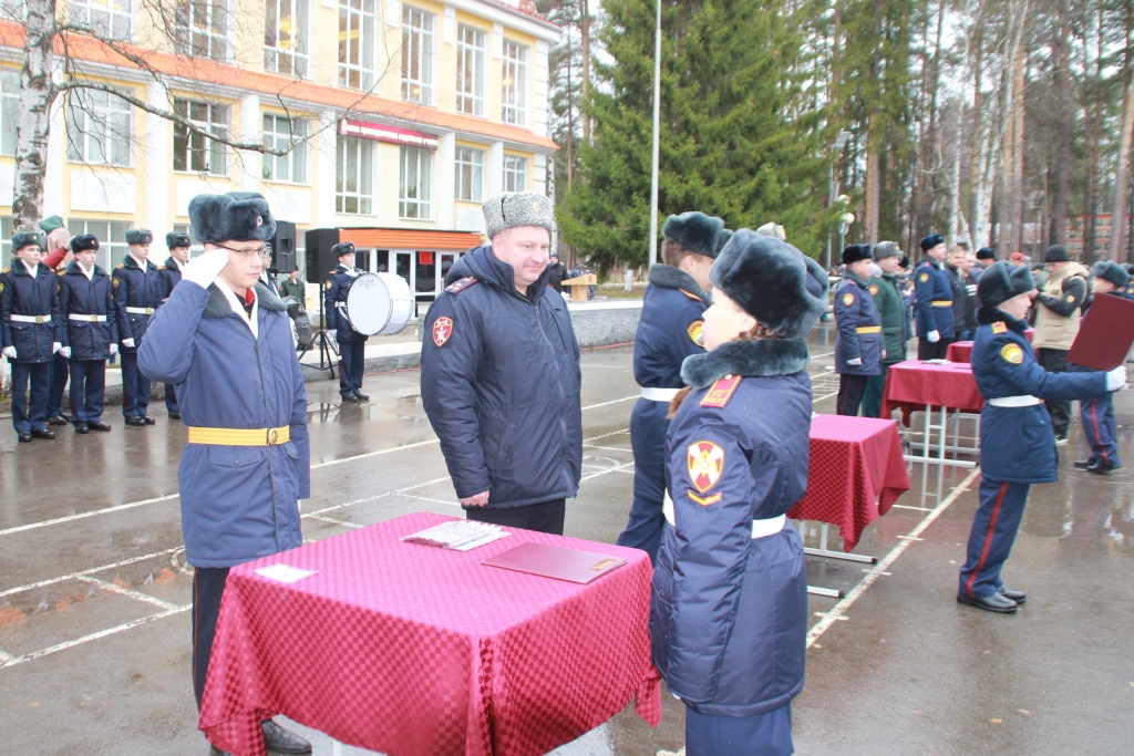 Мероприятие началось на строевом плацу училища, где кадеты перед офицерами, преподавателями, родителями и своими товарищами произнесли слова торжественной клятвы.