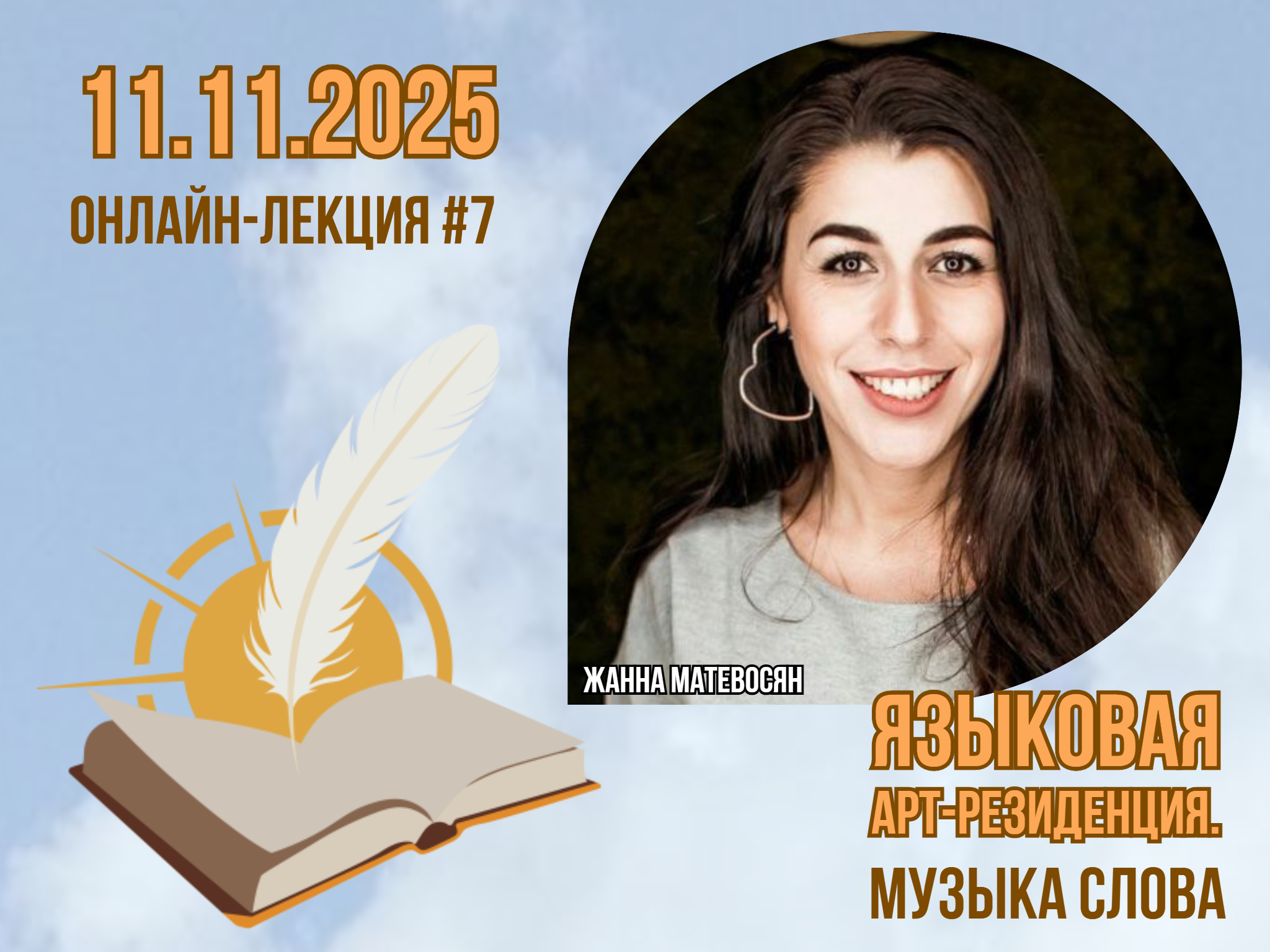 Седьмую онлайн-лекцию на тему «Техника речи для публичных выступлений» в рамках Большого открытого лектория Всероссийского социально значимого проекта «Языковая арт-резиденция. Музыка слова» проведёт Жанна Матевосян — режиссёр, педагог по сценической речи, член Союза театральных деятелей РФ, педагог по сценической речи Высшей школы деятелей сценического искусства им. Г.Г. Дадамяна.