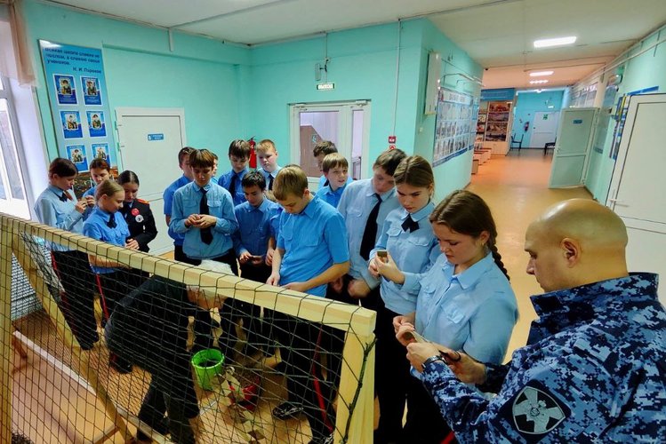 В учебном заведении была установлена специальная стойка для плетения маскировочной сети. Росгвардейцы и волонтеры провели для кадет и педагогов практическое занятие по изготовлению элемента маскировки для военнослужащих в зоне специальной военной операции.