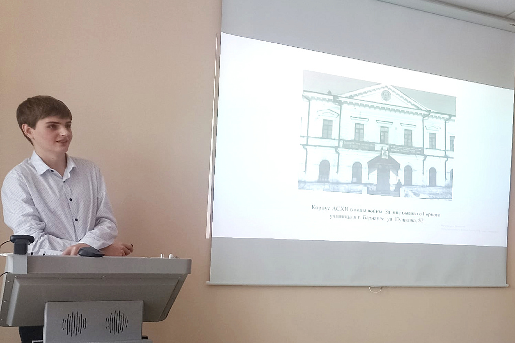 Еще один первокурсник БТФ АГАУ Ярослав Гавриленко отдельно отмечен жюри секции за изучение деятельности высших учебных заведений края в годы Великой Отечественной войны