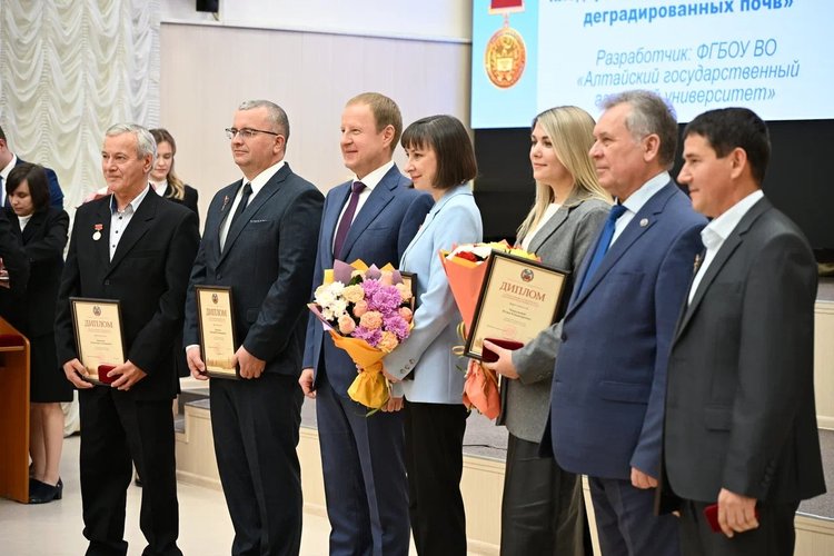 Среди лауреатов премии - научный коллектив Алтайского ГАУ в составе д.т.н., доцента, заведующего кафедрой экономики, анализа и информационных технологий Анатолия Тиньгаева, д.с.-х.н., доцента, профессора кафедры водопользования и мелиорации Александра Давыдова, к.с.-х.н., преподавателя кафедры ЭАиИТ Юлии Чепруновой, к.с.-х.н., доцента кафедры ЭАиИТ Людмилы Малютиной, а также работников индустриального партнера АГАУ, копмнаии ООО «АлтайАгроХимСоюз плюс» д.с.-х.н., профессора, Заслуженного деятеля науки РФ Раисы Воробьевой и к.с.-х.н., генерального директора Вячеслава Шепталова.