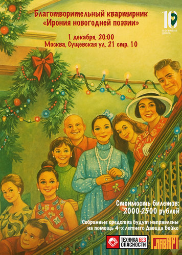 Благотворительный новогодний квартирник в стиле 60-70-х с артистами театра Моссовета в поддержку подопечного Фонда «География Добра»