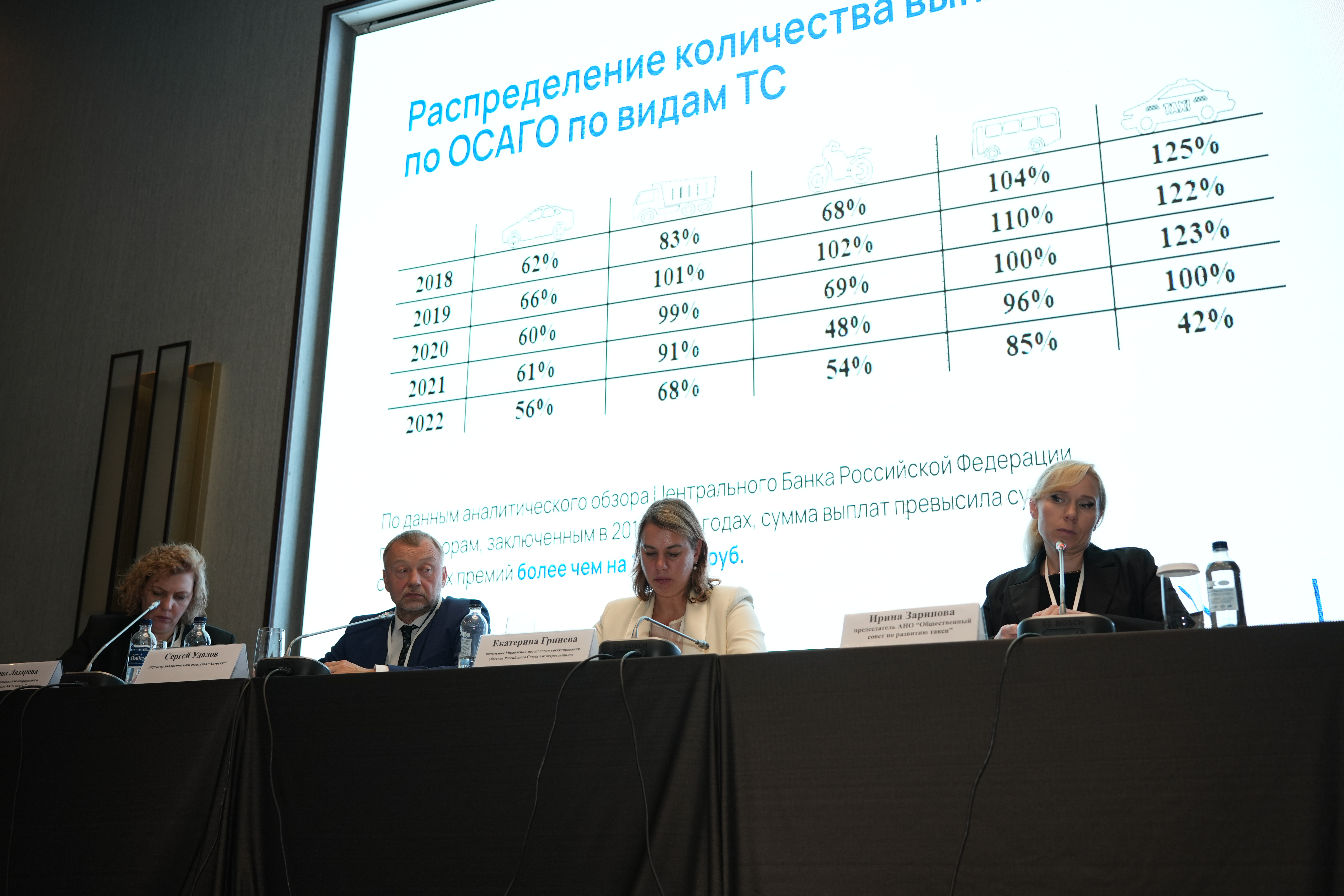 Председатель Общественного Совета по развитию такси Ирина Зарипова обозначила проблемы ОСАГО и ОСГОП в сегменте такси. Она напомнила, что ещё в 2021 году «97% обращений перевозчиков такси за полисом получали отказ», и хотя ситуация существенно улучшилась, тарифная модель остаётся несправедливой.
