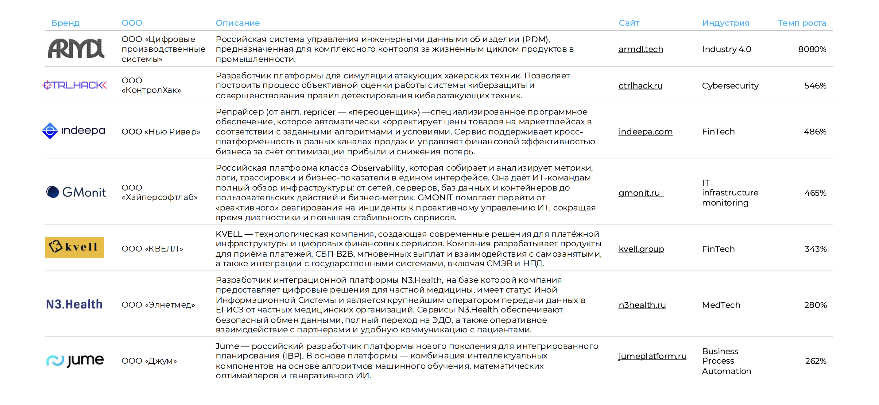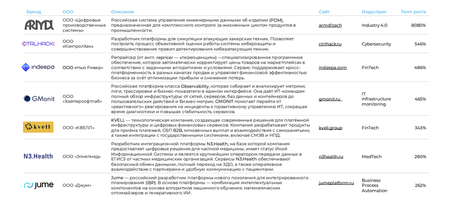 Сегмент IT infrastructure monitoring (мониторинг IT-инфраструктуры) вошел в топ-5 технологических индустрий по количеству быстрорастущих компаний в России – с долей 4,9%.