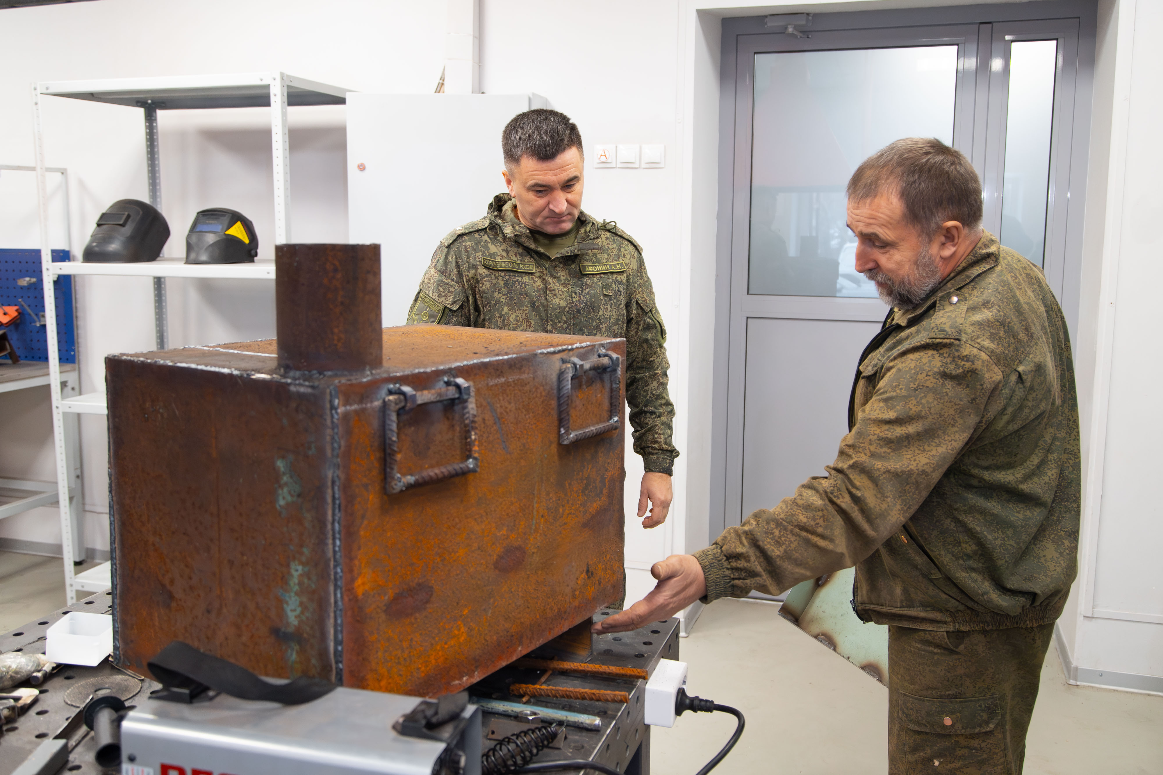«Полгода года назад мы передавали печь, изготовленную в АГАУ на передовую. Ее плюс – она легкая, может отапливаться сухим горючим или окопными свечами. А это удобно на линии соприкосновения, плюс такая печь дает мало теплового излучения, а значит не демаскирует блиндаж, ведь сейчас даже дроны оснащают тепловизорами. Но для обогрева большого блиндажа ее маловато! Вот наши парни и попросили сделать печь для блиндажа в тыловой зоне. Чтобы она топилась дровами, чтобы на ней можно было хорошо просушить обувь и обмундирование, согреть чай», - говорит заместитель командира дивизиона по боевому управлению в/ч 52929 гвардии майор Андрей Агафонов.