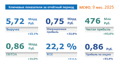 - Чистая прибыль, приходящаяся на акционеров, составила 476 045 тыс. руб. (+53,6%). Результат обусловлен эффективным управлением финансами и оптимизацией затрат;