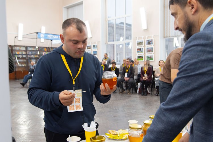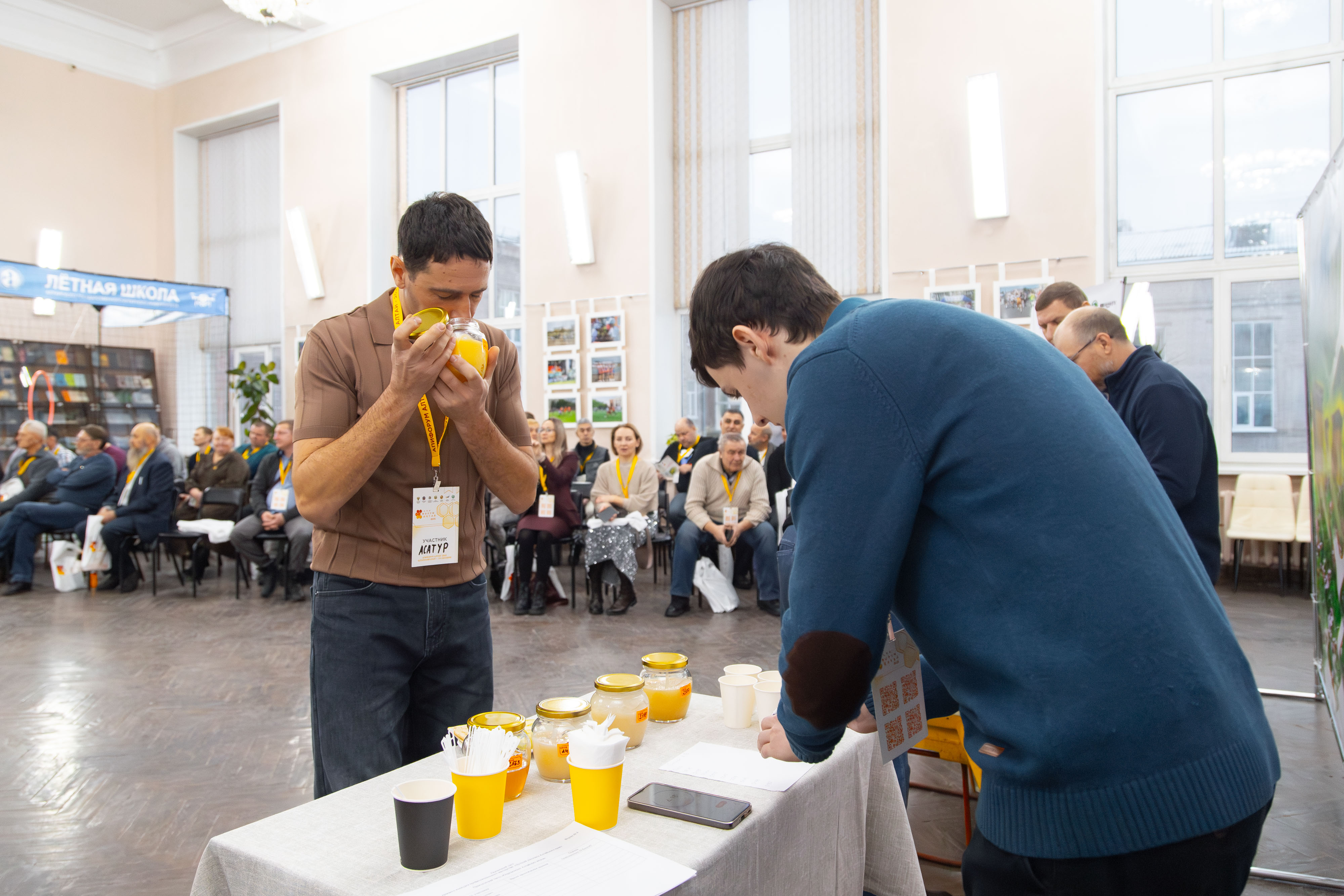 Наконец, навыки медового сомелье конкурсанты демонстрировали в локации «Определение алтайских медов». После дегустации предложенных образцов требовалось определить сорт мёда и район Алтайского края, где он был произведен.