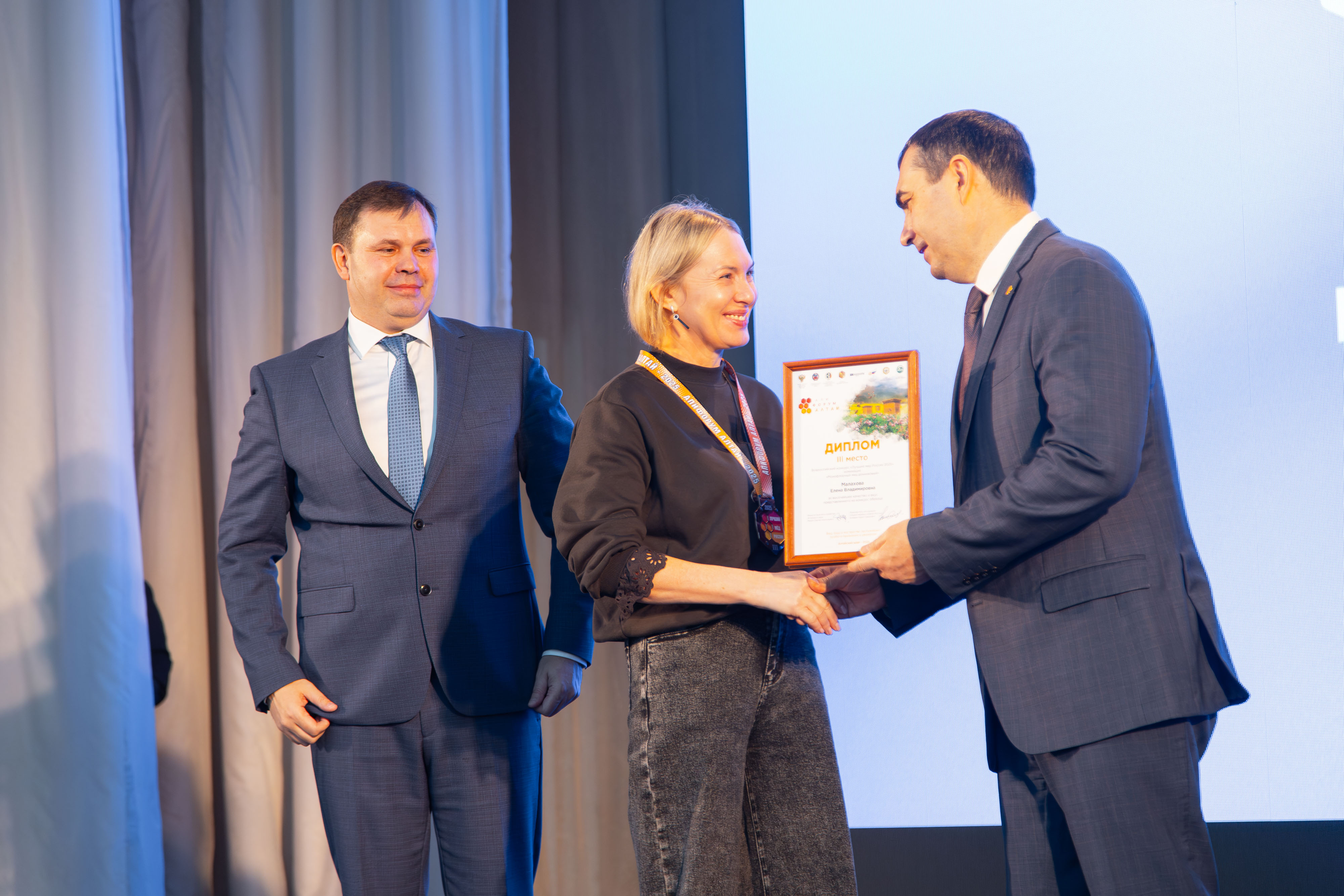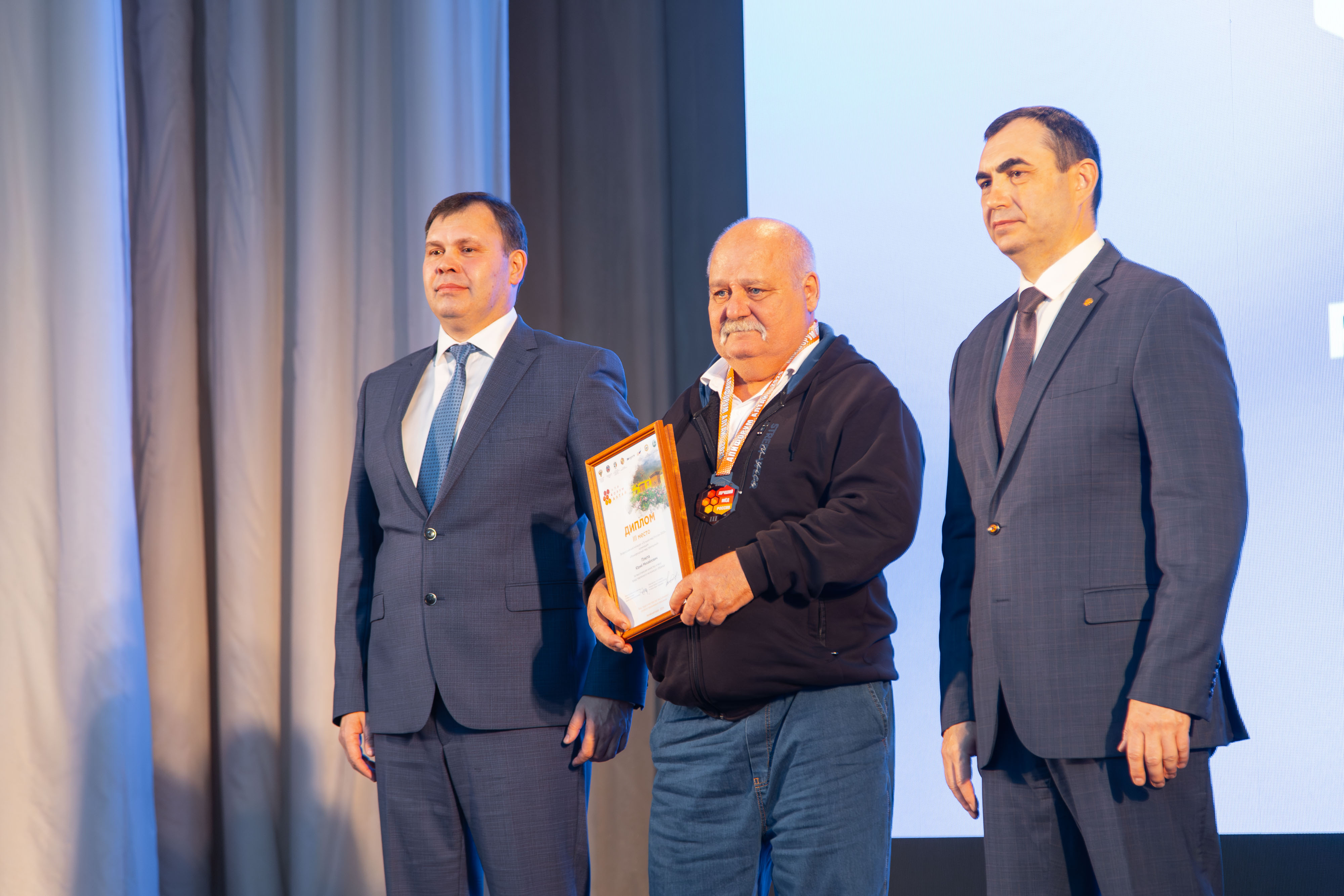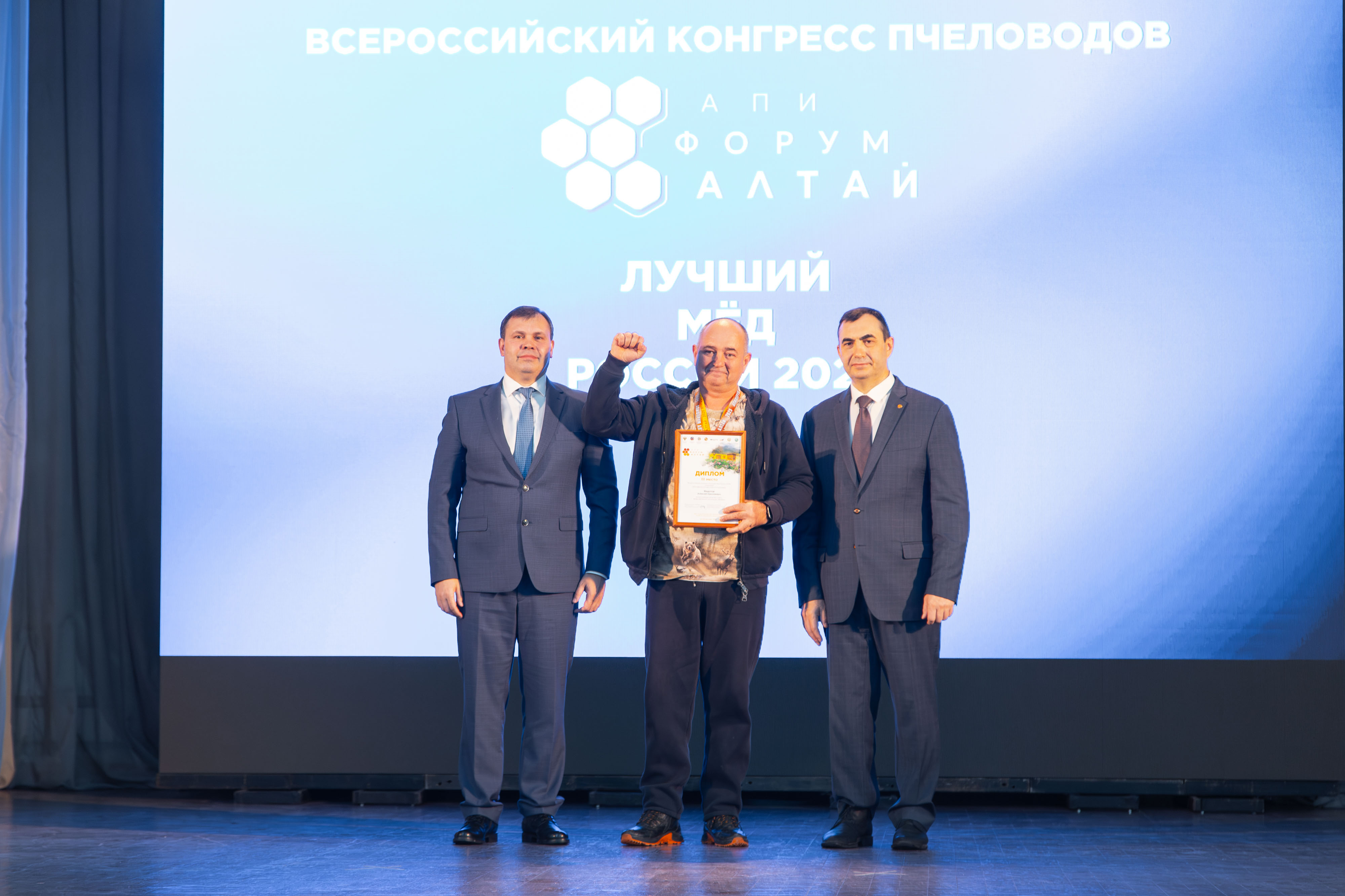 Заключительным мероприятием форума стала торжественная церемония награждения победителей конкурса профессионального мастерства «Лучший пчеловод Алтая-2025» и ежегодного конкурса «Лучший мёд России-2025». Участие в церемонии, которая прошла в актовом зале главного корпуса АГАУ, приняли заместитель министра сельского хозяйства России Роман Некрасов, министр сельского хозяйства Алтайского края Сергей Межин, врио ректора Алтайского ГАУ Владимир Плешаков и председатель «Гильдии медовых сомелье России» Надир Ахмедов.