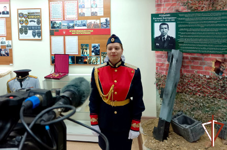 Кадеты подшефной Росгвардии курганской школы рассказали о подвиге Героя России Евгения Родькина