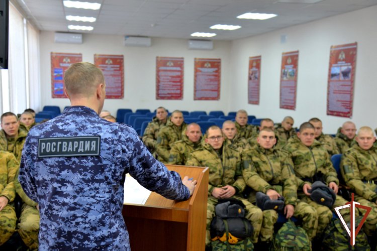 Перед отправкой к местам несения службы призывники встретились с офицерами тероргана, которые рассказали о задачах, выполняемых подразделениями Управления Росгвардии по Курганской области, и пригласили вступить в ряды росгвардейцев после возвращения из воинских частей.