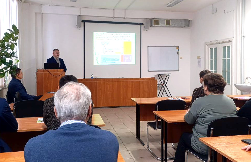 Заместитель декана ФПО по науке, к.с.-х.н., доцент Александр Шишкин выступил с докладом «О состоянии научно-исследовательской работы на факультете природообусройства в 2025 году».