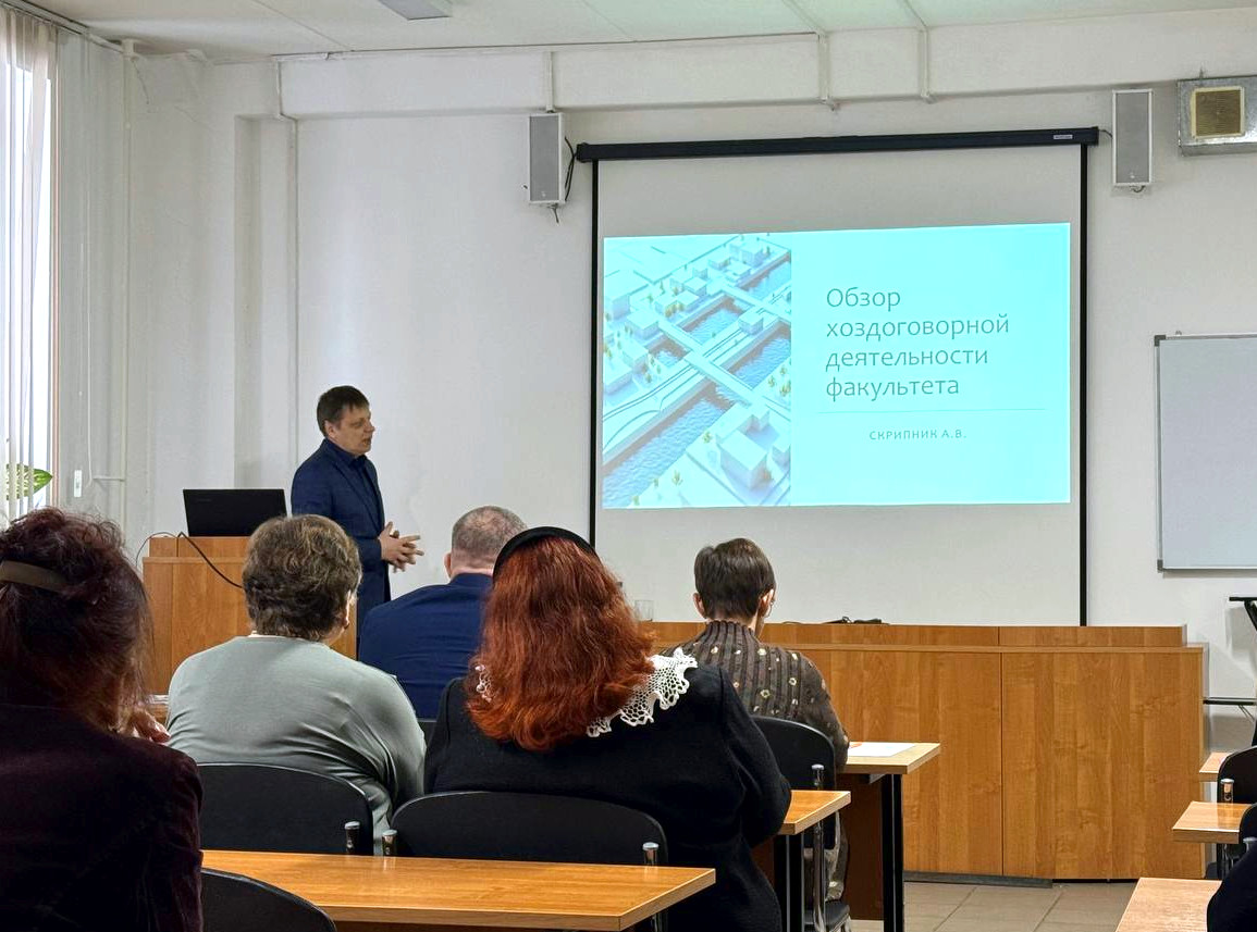 Алексей Скрипник представил доклад «О хоздоговорной деятельности на Факультете природообустройства». Он подробно доложил о выполнении проектно-изыскательских работ за период 2022-2025 гг., и перспективах на будущий год.