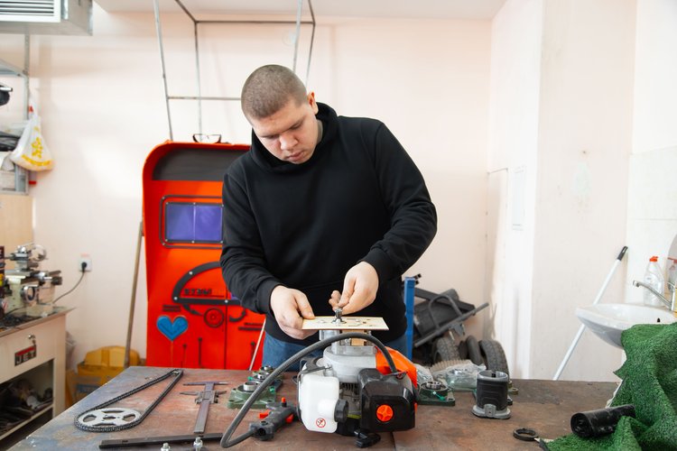 Студент 2 курса Колледжа агропромышленных технологий АГАУ Тихон Малофеев (специальность «Эксплуатация и ремонт сельскохозяйственной техники и оборудования») разработал уникальный агрегат: измельчитель травы, который работает от двигателя от триммера. Проект станет основой для дипломной работы Тихона.