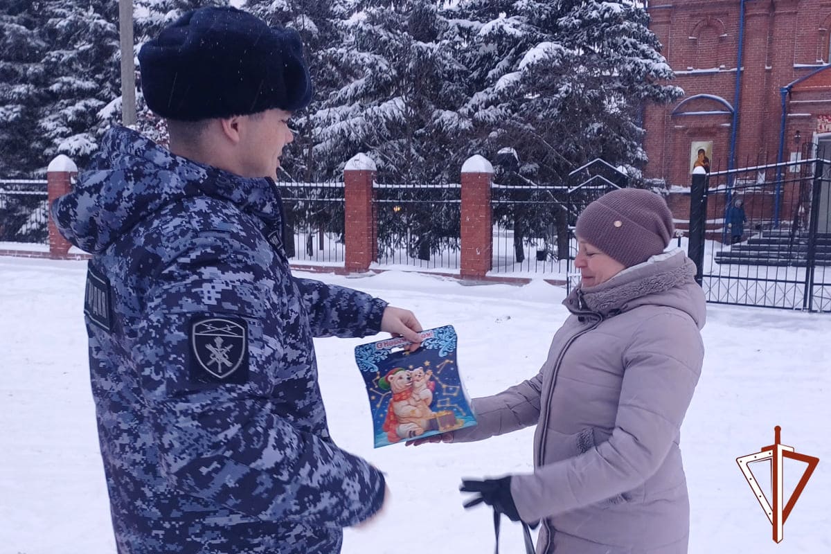 Представители ведомства от имени руководства территориального управления Росгвардии поздравили Людмилу Феофановну и Светлану Николаевну с новогодними праздниками и Рождеством. Росгвардейцы вручили им подарки, пожелав крепкого здоровья и благополучия.