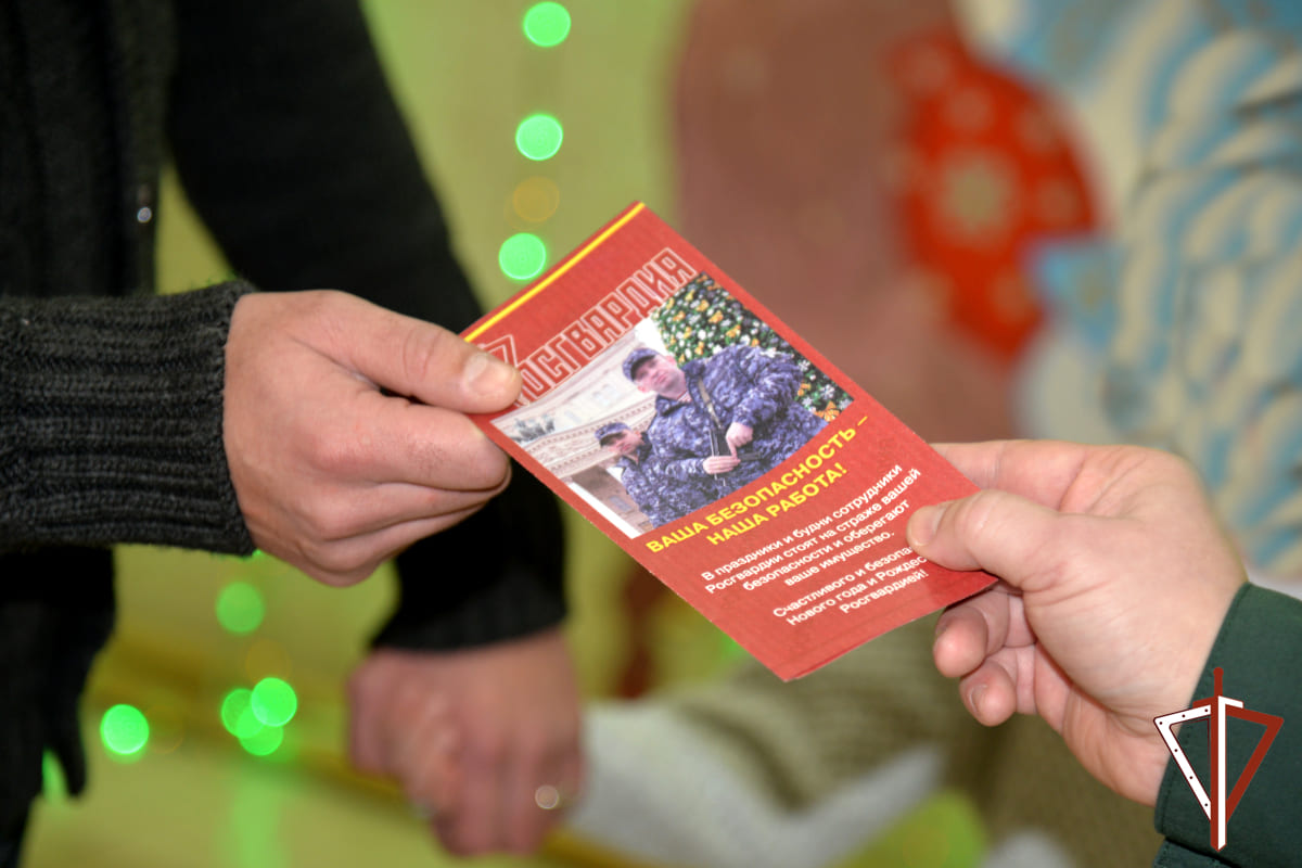 В Зауралье на протяжении новогодних и рождественских праздников военнослужащие и сотрудники территориального управления Росгвардии информировали граждан о мерах предосторожности при обращении с оружием и способах защиты своего имущества от преступных посягательств.