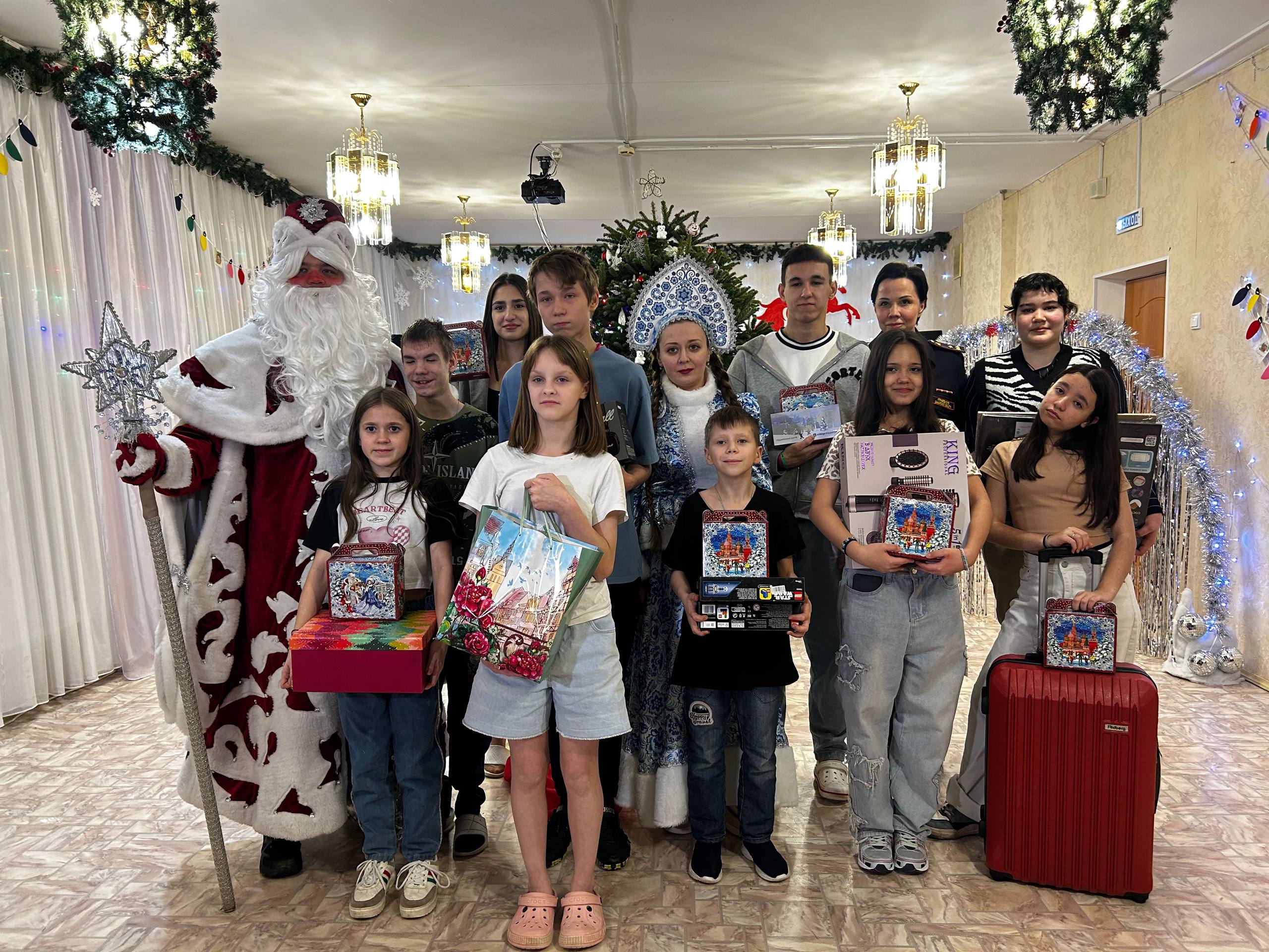 Остановка новогодних волшебников – «Иволга», центр помощи детям, оказавшимся в сложной жизненной ситуации. Несколько лет подряд росгвардейцы снимают с «Елки желаний» открытки воспитанников этого социального учреждения. Сложно посчитать, сколько новогодних пожеланий ребят стражи правопорядка уже исполнили за эти годы. И делают они это не по приказу, а по зову сердца – все подарки люди в погонах приобретают на личные средства. Большой красный чемодан, конструкторы и алмазная мозаика – Дед Мороз специального назначения привез ребятам именно те подарки, которые они просили.
