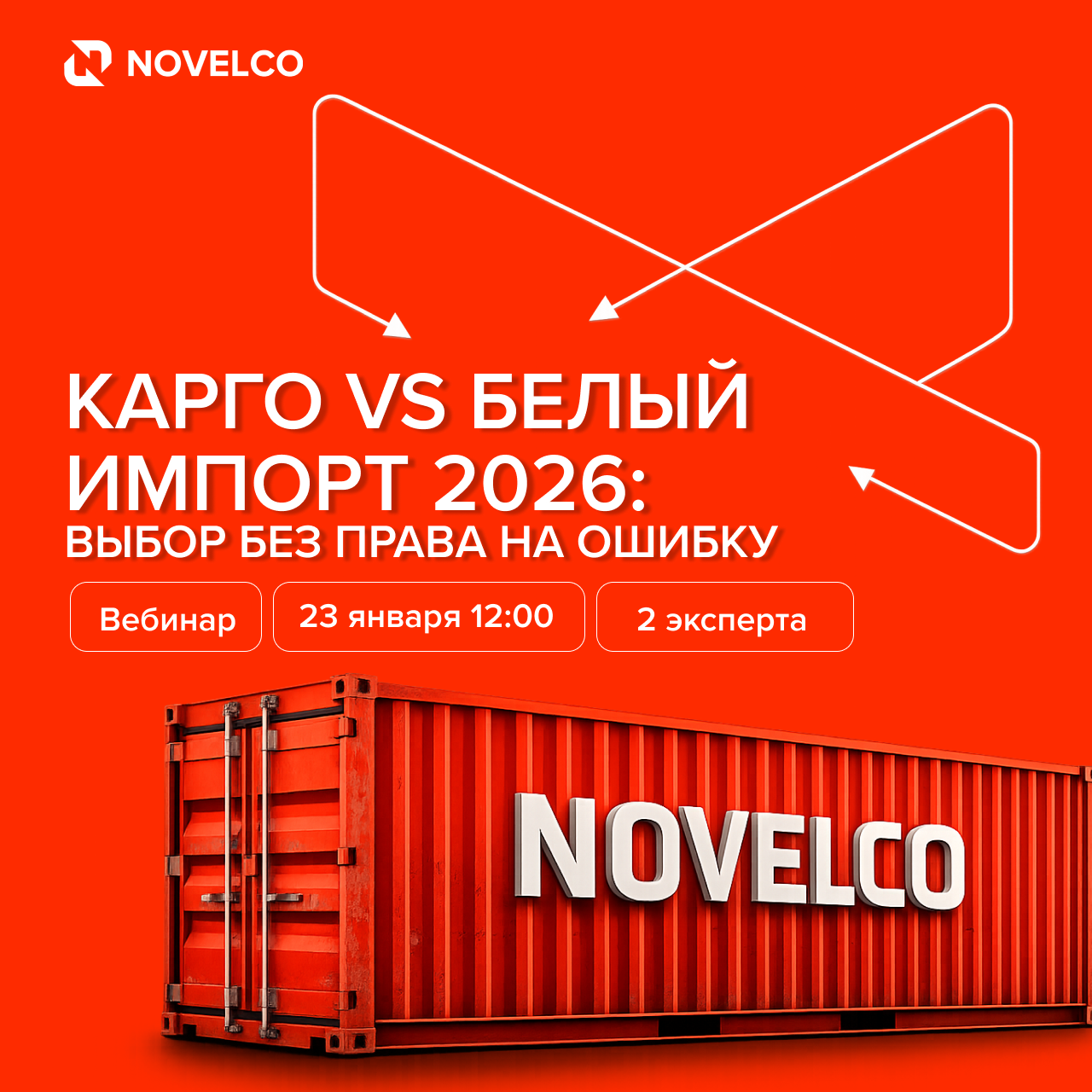 Вебинар «Карго vs Белый импорт 2026» — это практический разбор двух подходов к импорту без лозунгов и теории. Эксперты NOVELCO покажут реальные сценарии, сравнят экономику карго и белого импорта и дадут понятный план действий на 2026 год.