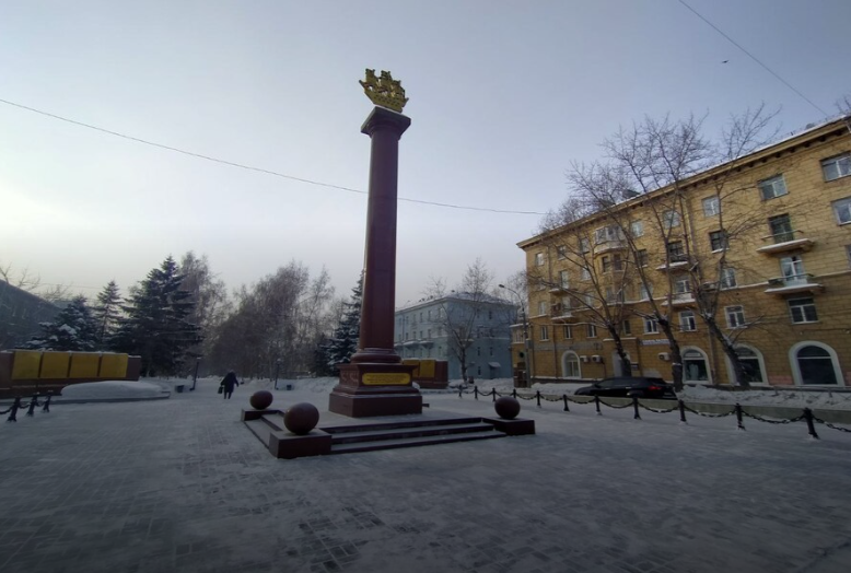 Мемориальный комплекс на площади Пименова, в начале аллеи на улице Восход, был открыт в 2005 году. Тогда же это место было названо Аллеей блокадников. Центральный элемент стелы — отсылка к Александрийскому столпу на Дворцовой площади Санкт-Петербурга. По обе стороны от него установлены пилоны, на которых высечены названия ленинградских предприятий и организаций, эвакуированных в Новосибирскую область в военные годы.
