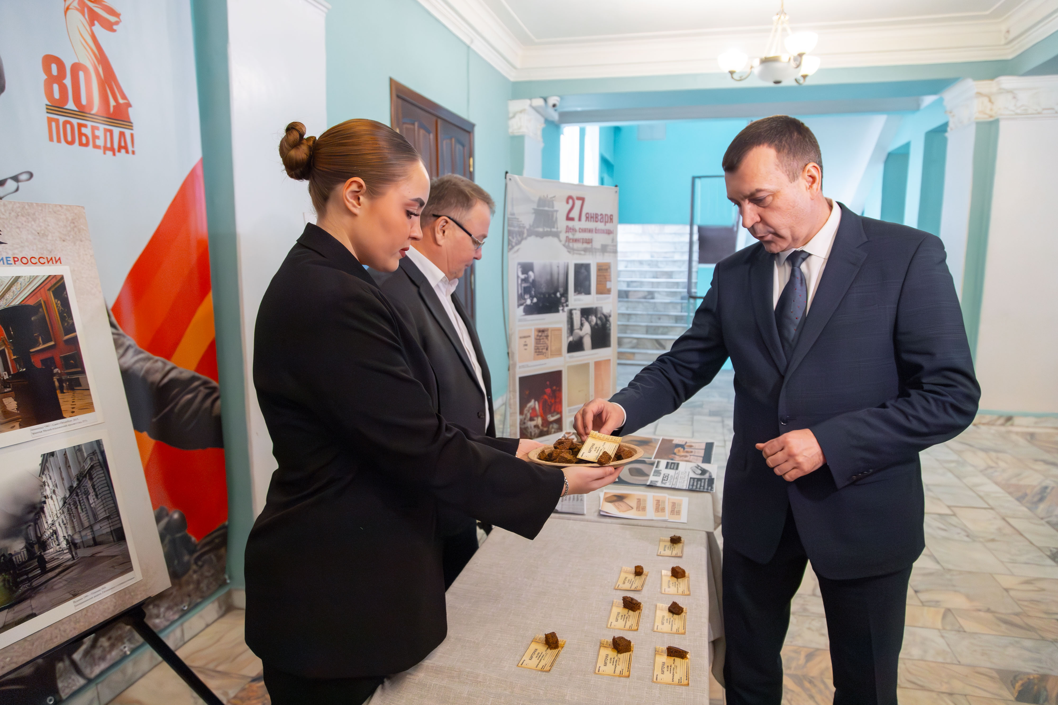 «Для нас блокада Ленинграда имеет особое значение! Ведь Алтайский ГАУ был основан в 1943 году на базе эвакуированного из Ленинграда на Алтай в конце 1941 года Пушкинского сельскохозяйственного института. Вы сами, ребята, можете увидеть, что такое сто двадцать пять грамм блокадного хлеба – дневная норма для неработающего населения! Мы хотим, чтобы ваше поколение сохранило живую память о тех событиях, и чтобы вы никогда больше не допустили их повторения!», - отметил Владимир Плешаков.