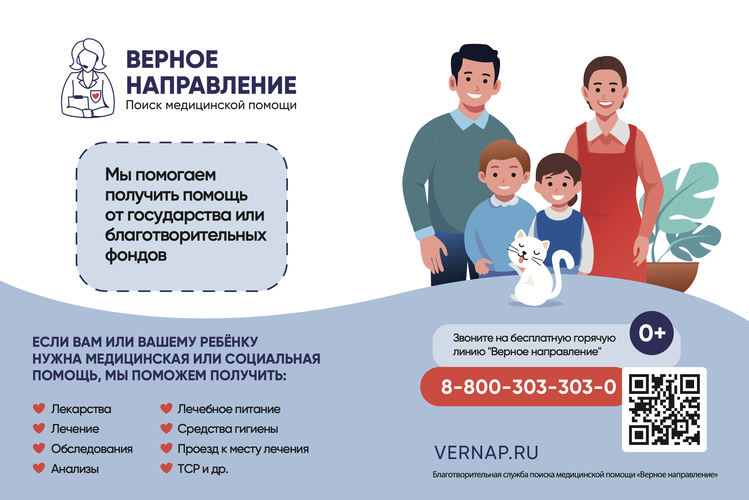 В январе Служба «Верное направление» отмечает свою первую важную дату – 5 лет. Служба помогает тяжелобольным взрослым и детям, которые не могут получить или оплатить необходимое лечение, лекарства, технические средства реабилитации, обследования, а также проезд к месту лечения и проживание в момент его прохождения.