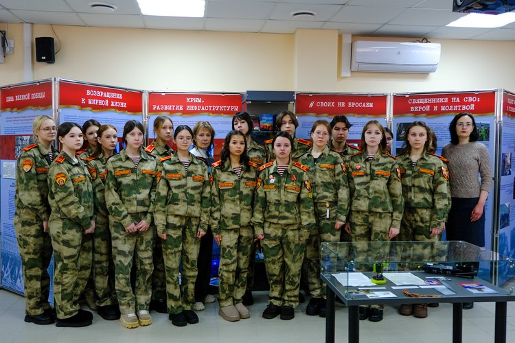 Кадеты также увидели материалы, посвящённые гуманитарной миссии и вкладу жителей республики в поддержку бойцов и населения освобождённых территорий.