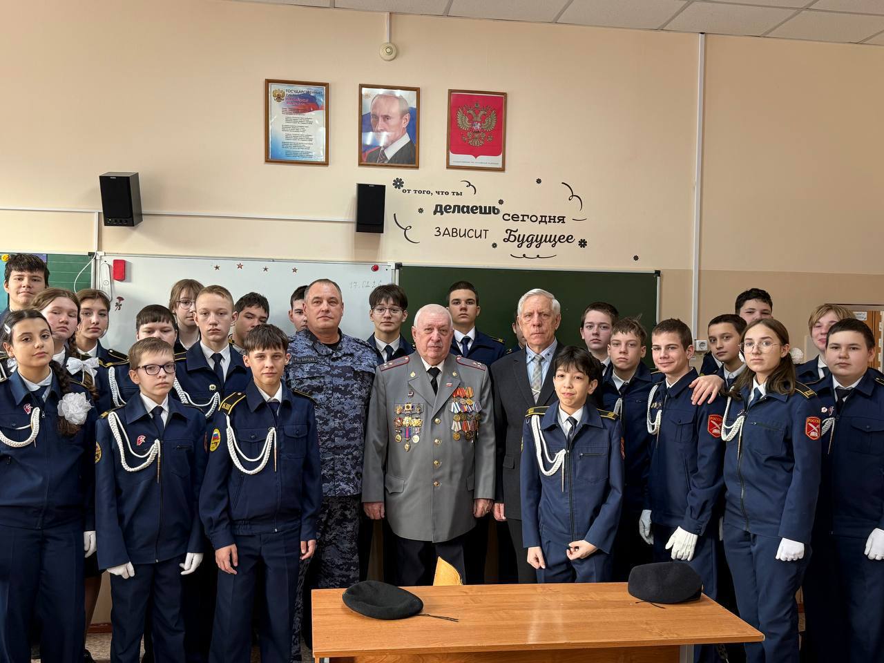 «Для нас большая честь в год 10-летия Росгвардии находиться сегодня в стенах этой школы, которая носит имя настоящего Героя — Евгения Золотухина, отдавшего жизнь за безопасность нашей Родины. Желаю вам быть достойными его памяти, с честью носить кадетские погоны, хорошо учиться и расти настоящими патриотами. С Днем защитника Отечества!».