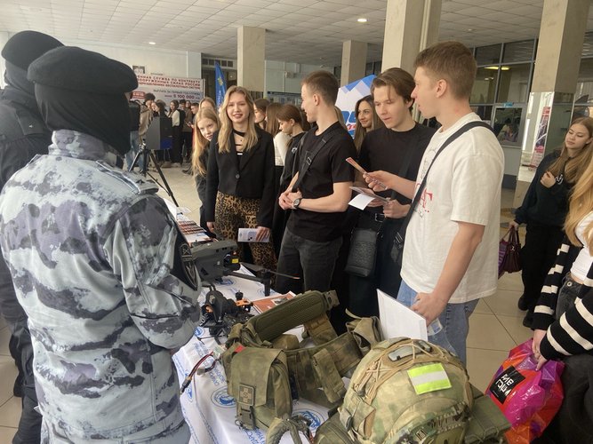 Для студентов были развернуты специализированные площадки, на которых сотрудники отрядов мобильных особого назначения «Утес» и «Смерч» (на транспорте), а также представители вневедомственной охраны Росгвардии подробно рассказали об истории образования ведомства, этапах становления современной Росгвардии, её структуре и основных задачах, стоящих перед личным составом в юбилейный для ведомства год.