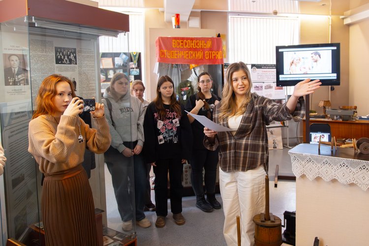 Экскурсию для первых посетителей, которыми стали студенты 2 курса Экономического факультета и первокурсники Биолого-технологического факультета, провели студенты Алтайского государственного института культуры Александра Лукьянова и Михаил Недозрелов. Ребята вместе с преподавателем кафедры музеологии и туризма АГИК Анастасией Астаховой участвуют в проекте «Научное проектирование эксподизайна, систематизация и трансляция исторического наследия АГАУ».