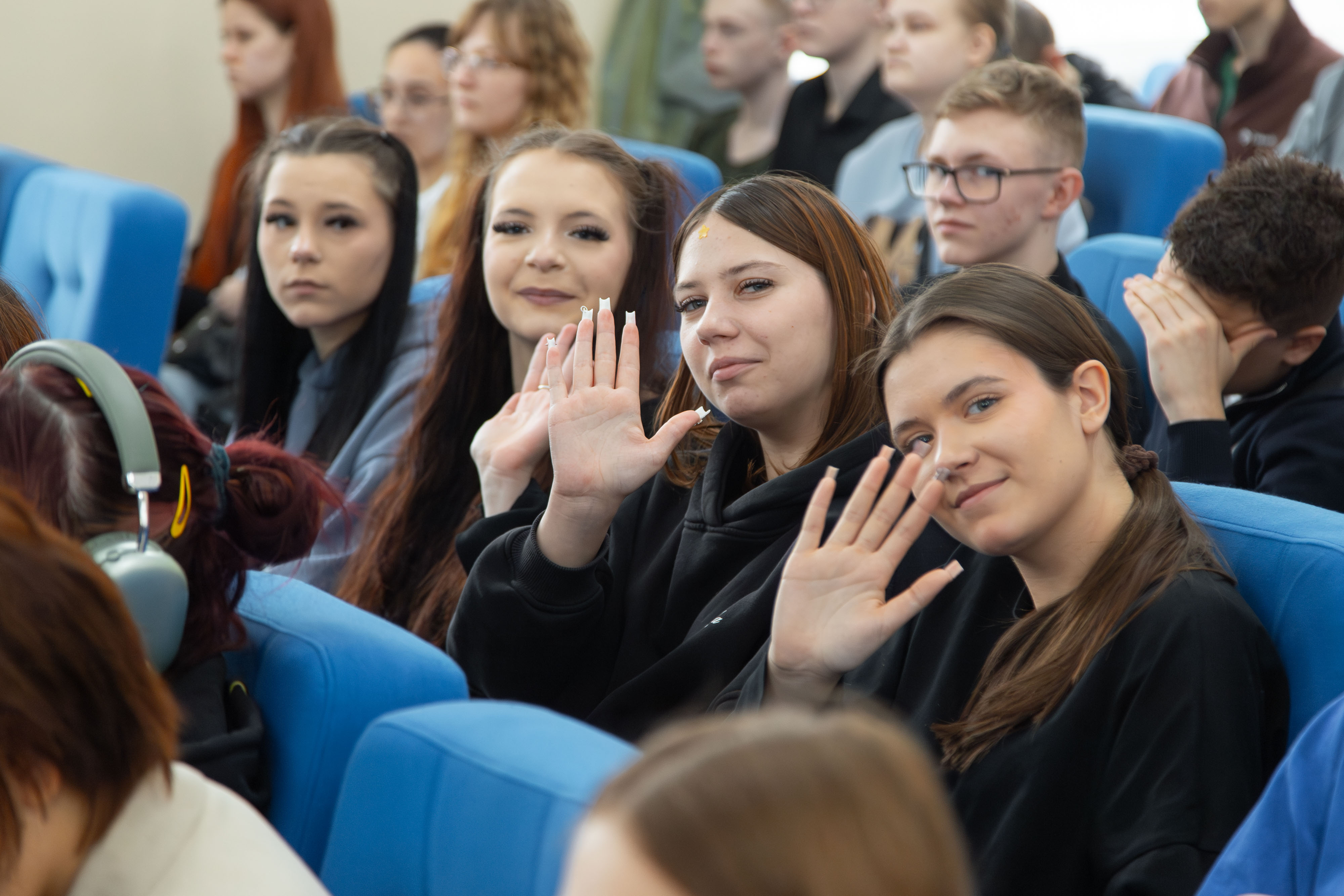 С самого утра вы вестибюле главного корпуса всем представительницам прекрасного пола, спешащим на работу или занятия, праздничное настроение создавали участники театральной студии «Маска». Они дарили женщинам конфеты и провожали на второй этаж.