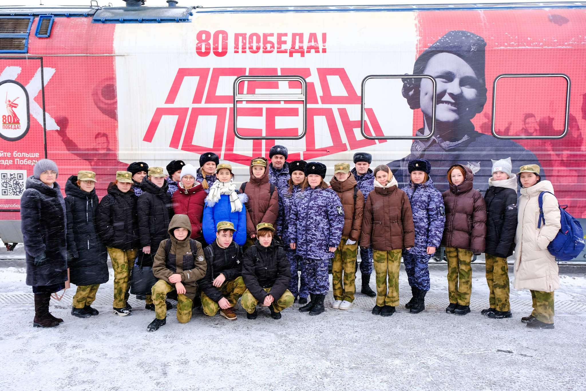 Сотрудники и военнослужащие Управления Росгвардии по Республике Марий Эл совместно с подшефными кадетами посетили уникальную иммерсивную передвижную выставку «Поезд Победы».