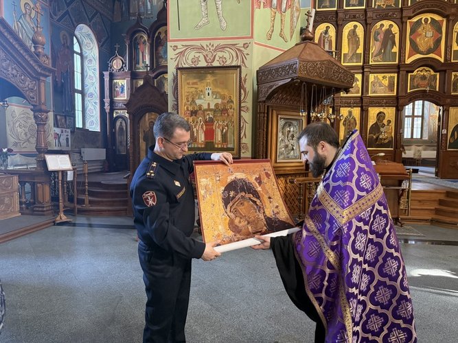 Полковник полиции Сергей Абрамов поблагодарил представителей духовенства за благочестивый христианский обычай и выразил уверенность, что эта святыня будет способствовать духовному укреплению личного состава и успешному выполнению ими задач.