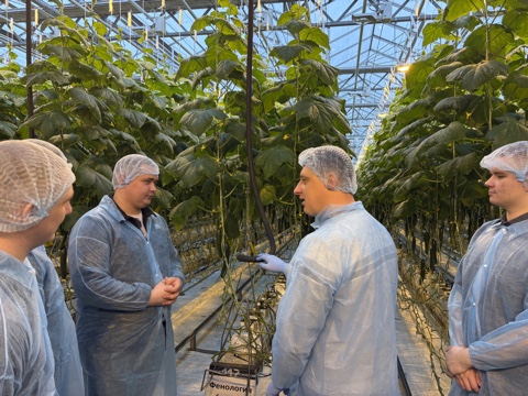 Студенты посетили биолабораторию и теплицу для выращивания огурцов.