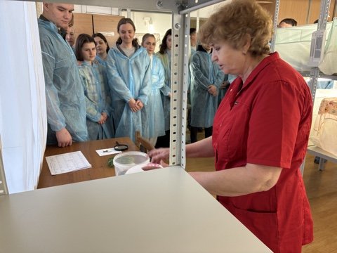 Заведующий биолабораторией Людмила Рябко рассказала студентам об особенностях разведения хищных клопов-энтомофагов: предпочитаемые маточные растения, особенности микроклимата, продолжительность жизненного цикла, правила выпуска в теплицу, поддержание популяции в межсезонье. Для дополнительной подкормки хищников используются яйца зерновой моли. Этого вредителя также разводят в лаборатории, используя специализированные установки, позволяющие легко отделять яйца моли от зерна ячменя.