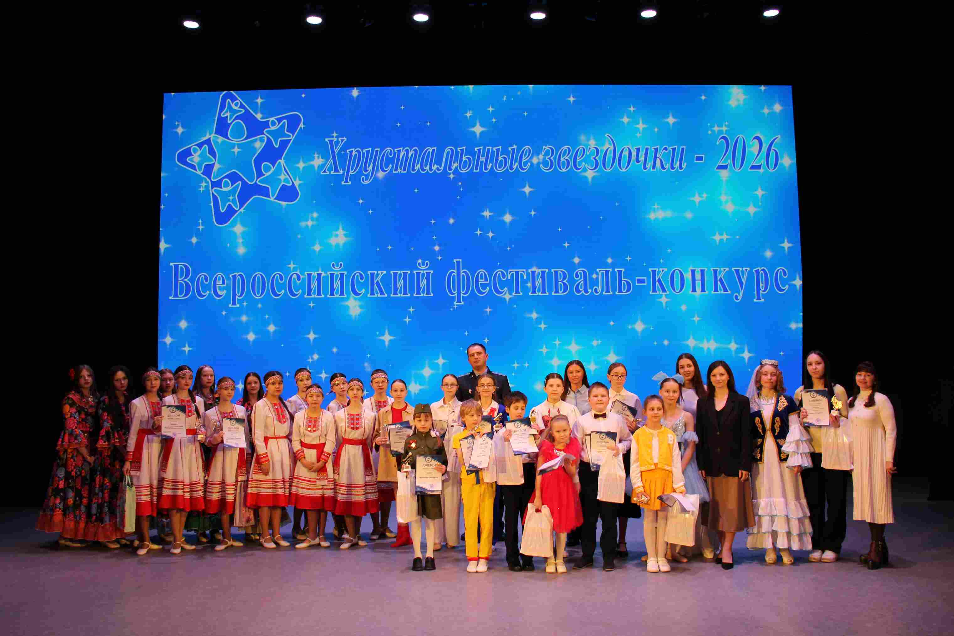 «Хрустальные звездочки» - ежегодный фестиваль-конкурс, который впечатляет своими масштабами, ведь в нем принимают участие дети из всех регионов России: от Калининграда до Владивостока. Участники соревнуются в трёх номинациях: вокал, хореография и исполнительское мастерство (игра на музыкальных инструментах) по двум возрастным категориям.