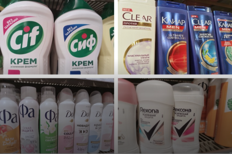 Замена названий выглядит так: например, если раньше чистящее средство называлось «Cif», то теперь то же название пишется русскими буквами — «Сиф», дезодорант был «Rexona», стал — «Рексона». Во многих торговых точках сейчас можно наблюдать этот переход с латиницы на кириллицу: рядом стоят товары с разными вариантами названий. В этом убедился журналист Infopro54, посетивший несколько городских супермаркетов и специализированных магазинов косметики и бытовой химии.