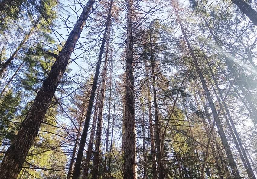 Лесопатологическое обследование проведено на двух участках на площади 11,5 гектаров, но здесь важен не объем, а своевременность его проведения. В ходе работ выделено 5 лесопатологических выделов, где выявлено усыхание еловых насаждений из-за повреждения короедом-типографом. Состояние ельников в очагах вредителя характеризуется как неудовлетворительное и здесь требуется проведение санитарно-оздоровительных мероприятий.