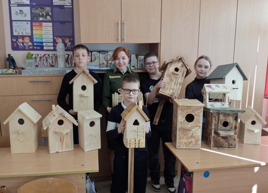 Практическая часть стала особенно запоминающейся: школьники вместе со специалистами филиала подготовили 13 скворечников, которые вскоре украсят школьный сад. Эти «птичьи домики» станут надёжным убежищем для пернатых и помогут им вывести потомство. Как отметила Ксения Александровна, такие инициативы — это вклад в сохранение природы: «Создавая искусственные гнездовья, мы помогаем птицам быстрее освоиться после возвращения с зимовки. Это способствует увеличению их численности, снижению количества вредителей и, как следствие, защите лесов».