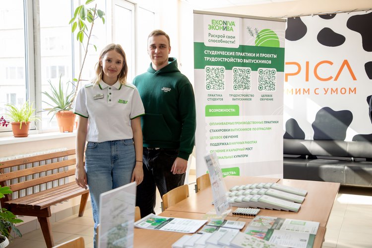 Студентка 2 курса Биолого-технологического факультета направления «Продукты питания животного происхождения» Элеонора Быстрицкая уже учится по целевому договору с компанией «Эко Нива», чей стенд тоже представлен на площадке.