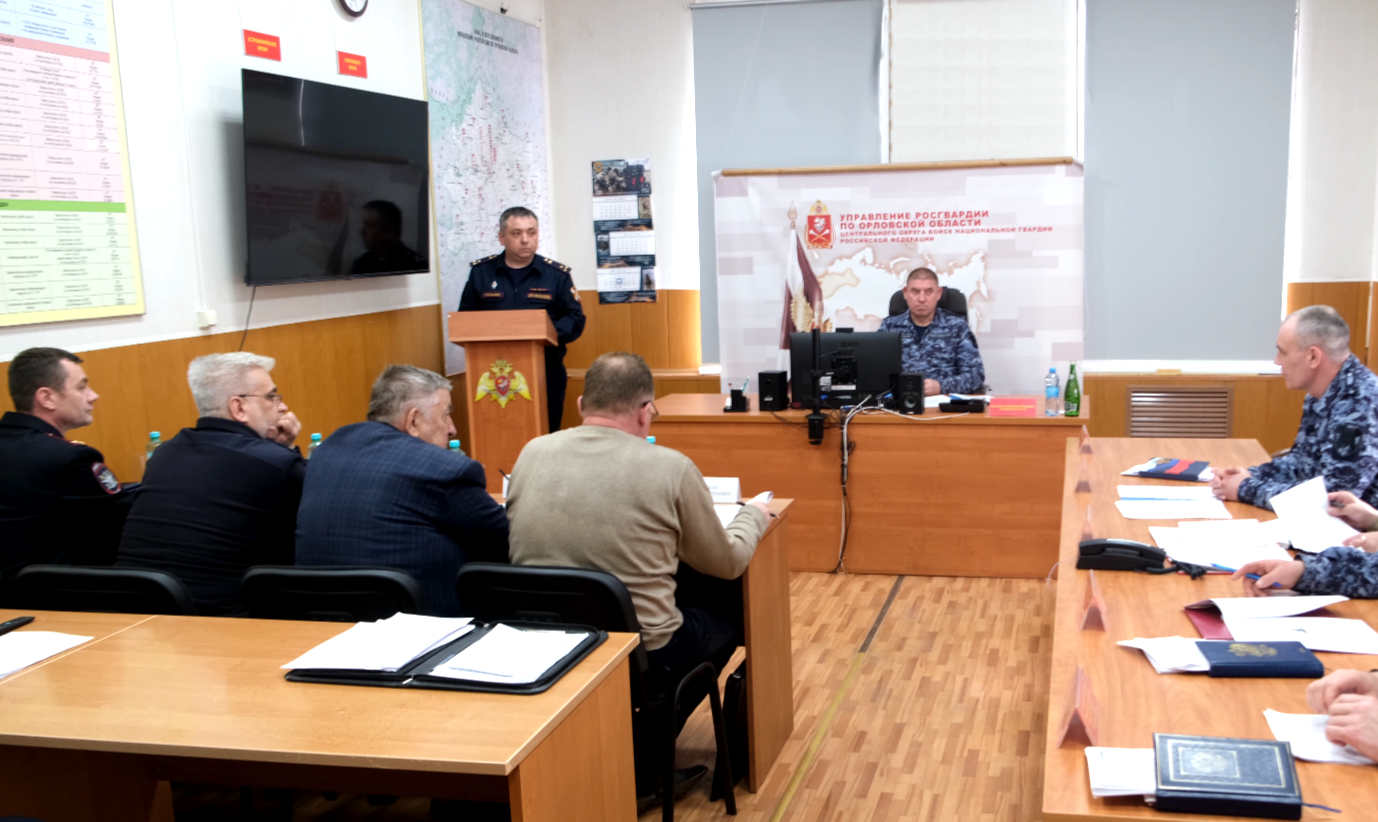 В Управлении Росгвардии по Орловской области состоялось заседание Оперативного штаба под руководством полковника полиции Юрия Нечушкина.