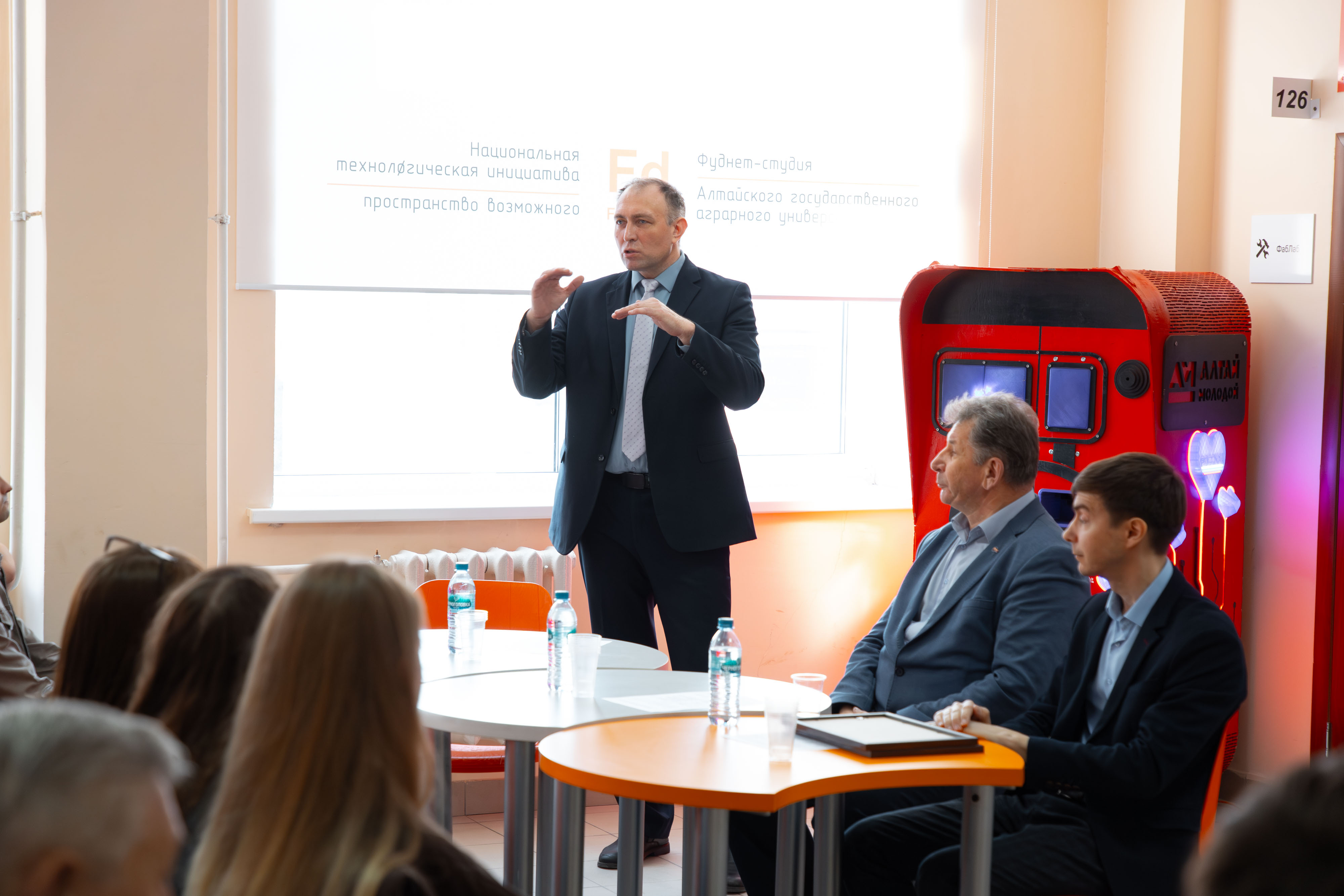 С приветственным словом к участникам также выступил председатель Алтайской краевой общественной организации ВОИР Михаил Никишанин, отметивший преемственность изобретательских традиций АГАУ и их вклад в технологическое развитие Алтайского края.
