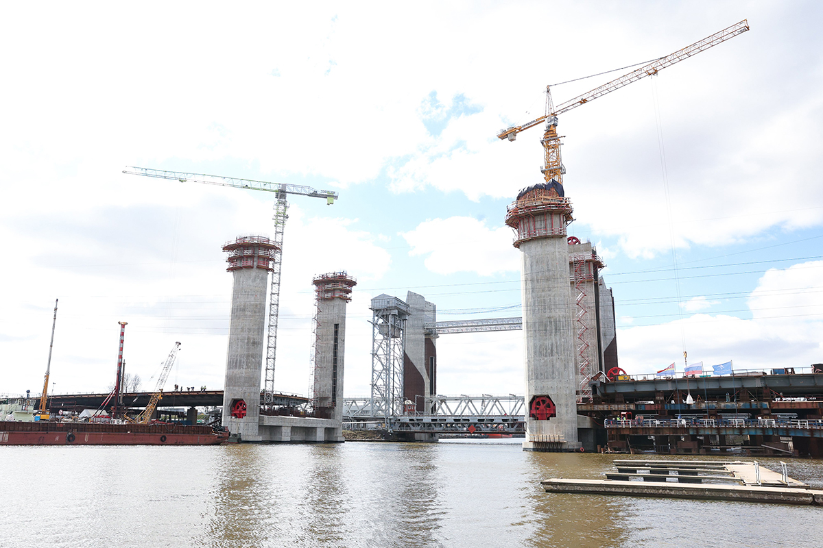 Автодорожный мост – уникальное сооружение. Он станет первым в России автодорожным мостом с вертикально-подъемной системой, размещенной внутри железобетонных башен опор. При разведении будет обеспечен подмостовой судоходный габарит шириной 50 метров и высотой 28 метров.